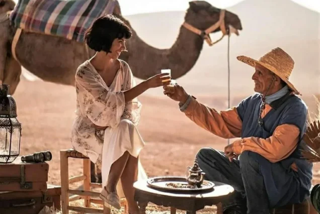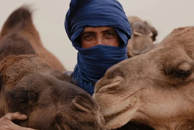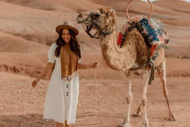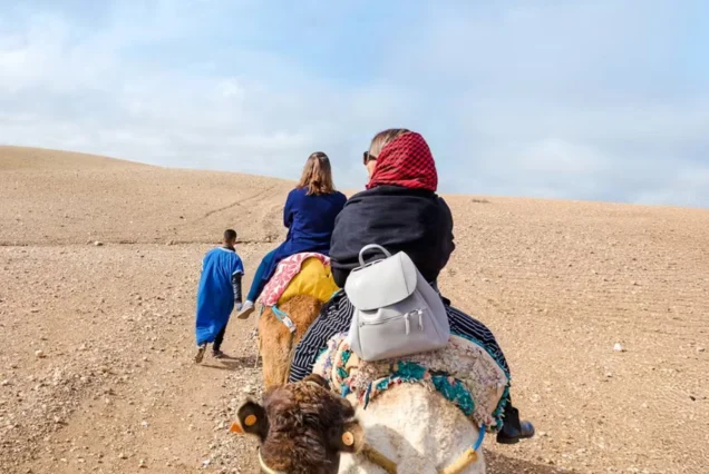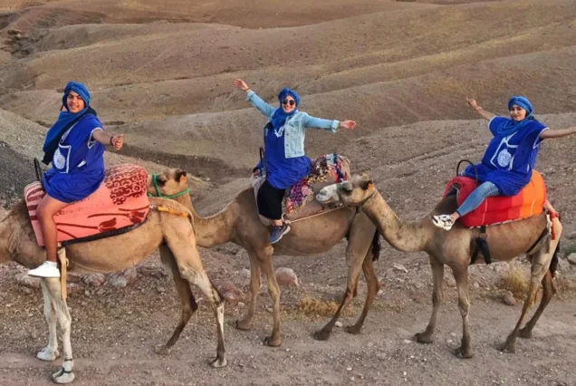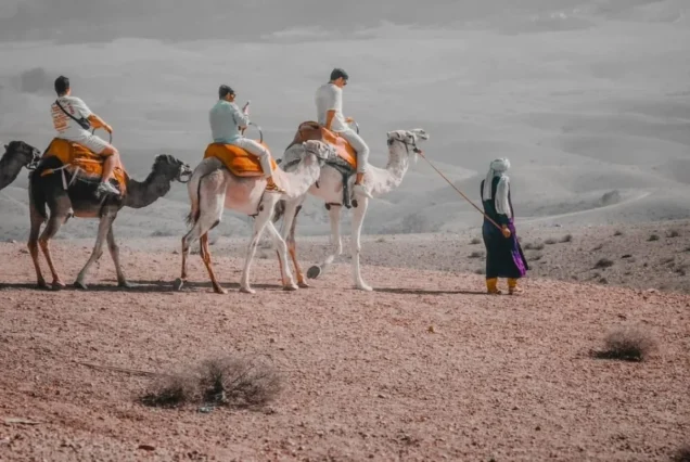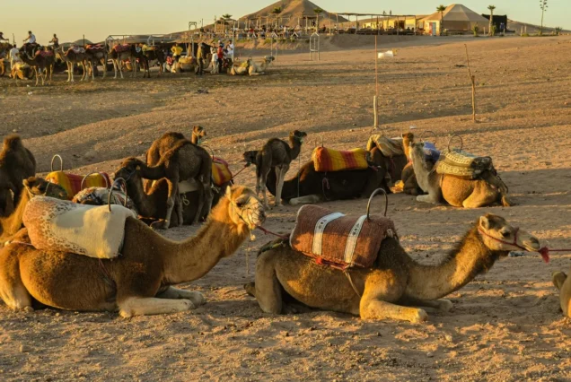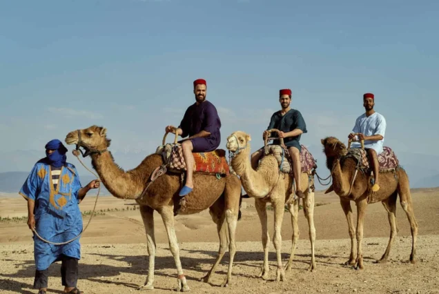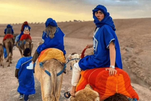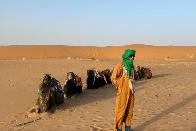 Guiados por experientes guias locais, irão cavalgar camelos dóceis a um ritmo relaxante enquanto aprendem sobre a cultura berbere, a vida no deserto e as tradições nómadas. São fornecidos trajes tradicionais berberes, permitindo captar fotos inesquecíveis num cenário verdadeiramente marroquino.
